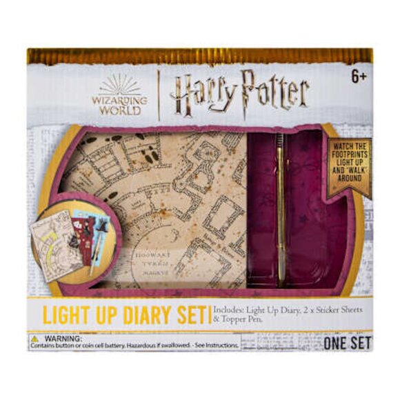 Step into the wizarding world and make your journaling experience truly magical with the Harry Potter Light-Up Diary Set! Featuring the iconic Marauder's Map cover, this enchanted journal lights up with footsteps that "walk" across the page, bringing the magic of Hogwarts right to your hands. 🕵️♂️✨
