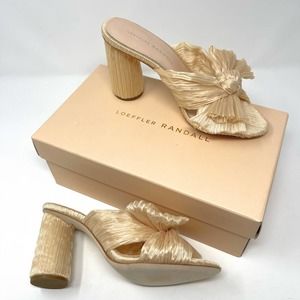 NWB Loeffler Randall Women's Almond Cream Penny Pleated Bow Slide Sandal 6.5
