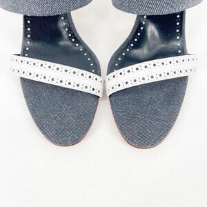 Manolo Blahnik Denala Blue White Denim Leather Dual Band Slide Heels IT 40