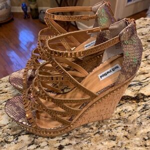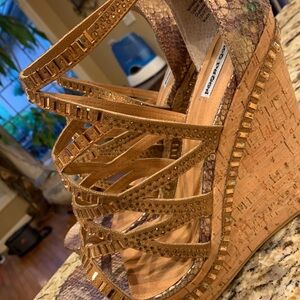 Chic metallic gold wedges. Strappy design with cork heel. Ideal for summer outings. These shoes are Beautiful definitely eye catching.