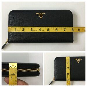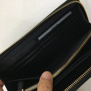 NWB PRADA Zip Around Long Wallet Portafoglio Lampo Nero/Black Leather Authentic