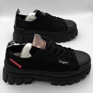 Step out in style with these New Without Box Palladium Black Revolt Lo Tx Low Top Sneakers! Perfect for adding an edgy yet casual vibe to your wardrobe. These sneakers are designed for comfort and style, making them ideal for everyday wear. The sleek black color ensures they will pair effortlessly with a variety of outfits. Get ready to turn heads with these must-have sneakers!