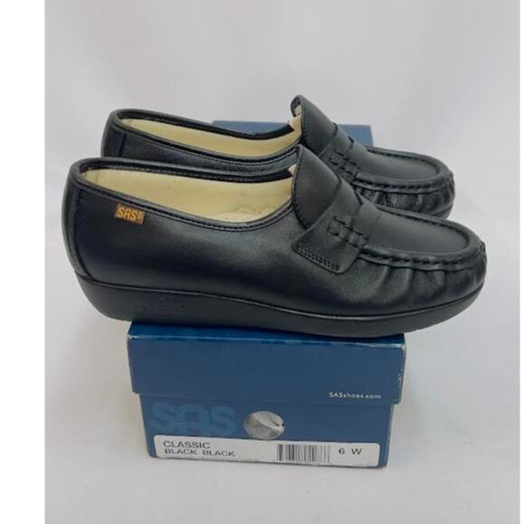 NWB! SAS Womens Classic Slip On Comfort Loafer Black 6 W - Wide (C)