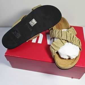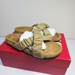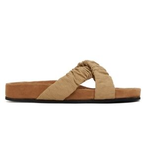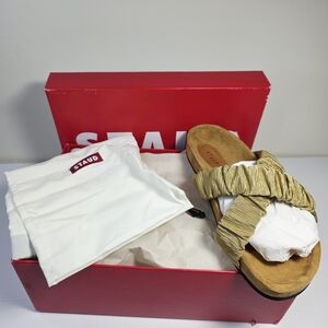 NWB STAUD Tan Ruching Criss Crossing Straps Women's Slip On Sandals Size 38