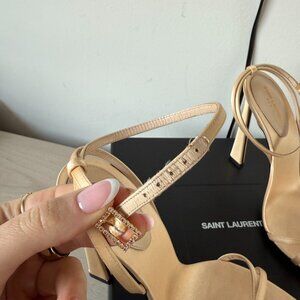 Saint Laurent Lila Sandals Beige Satin Ankle Strap High Heels