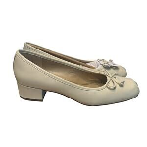 • Features: Modern Ivory, Leather, Rosa Style, Square Heel, Block Heel, Dainty Bow Detail