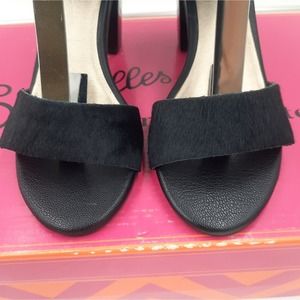 NWB Seychelles Prominent 10 Black Calf Hair Open Toe Heels