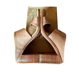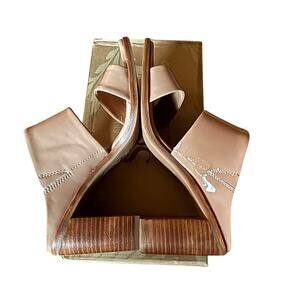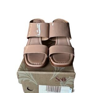 NWB Sofft Sheila Taupe Leather Heeled Sandals Size 9 Open Toe Comfort Block Heel
