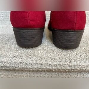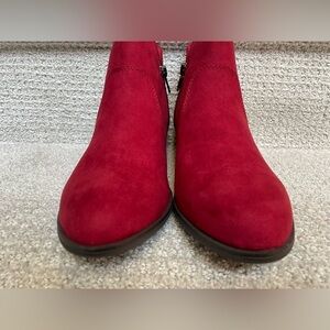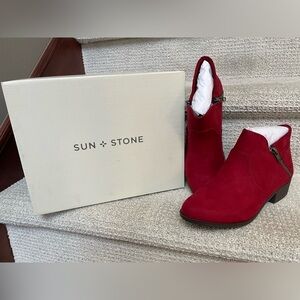 NWB Sun Stone Adeline Cherry Red Block Heel Faux Suede Zip Ankle Boots