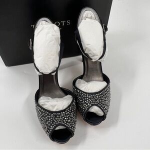 ✅ NWB TALBOTS BLACK BEADED ANKLE STRAPPED HEELS SIZE 9.5