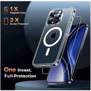 •TAURI for iPhone 15 Pro Max Case, Compatible with Magsafe [Yellowing Resistant] with 2X Screen Protectors, Military-Grade Protection, Slim Phone Case for iPhone 15 Pro Max, Clear, 6.7"