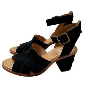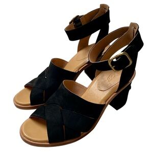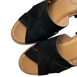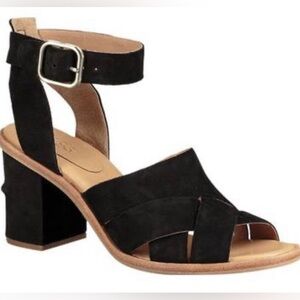 NWB UGG Sandra Nubuck Leather Block Heel Sandals Black Size 7.5