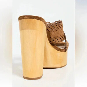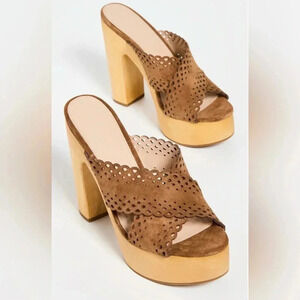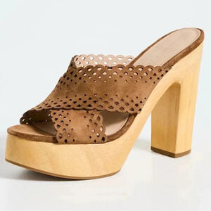 NWB Veronica Beard Gaynor Clogs Scalloped Leather Suede Cross Strap Chunky Heels