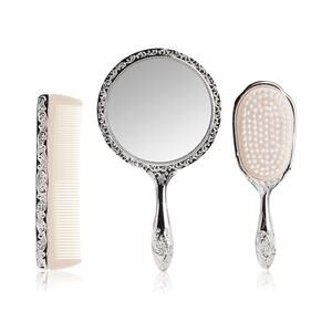 NWB Victorian Trading Co Brush Silver Comb & Mirror Silver Plated 3 Vanity Set