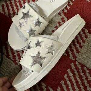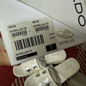 NWB Womens Aldo Estrellas Star Slide Sandals, White Size 7