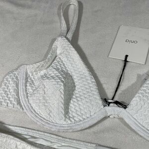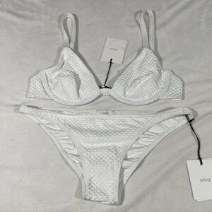 NWD $190 Onia [ Large ] Anna Textured Top + Ashley Bikini Bottom in White #4163