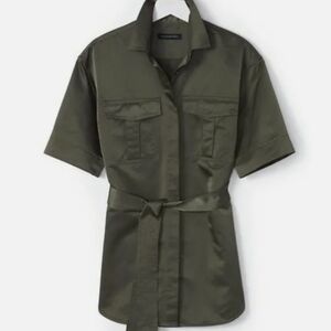 NWD Banana Republic Military Button Down Shirt Women's Size Green Short Sleeve