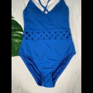 NWD $119 Bleu by Rod Beattie Basket Weave One-Piece Swimsuit Blue [ SZ 6 ] #L601