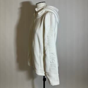 New With Defects Calvin Klein Performance White Fleece Zip Up Jacket Hooded