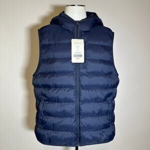 New With Defects Fabletics Navy Blue Marina Packable Puffer Vest Hooded Pockets Womens Size XXL