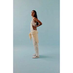NWD Free People Way Back Overalls in Ecru Size Large Jumpsuit Denim