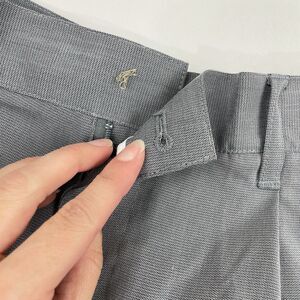 These gray pleated shorts from Geoffrey Beene are the perfect addition to your summer, fall, or spring wardrobe. With a button missing closure, slash pockets, and a front pleat detail, these shorts are both stylish and practical. They are made of a comfortable polyester rayon blend and are machine washable for easy care.