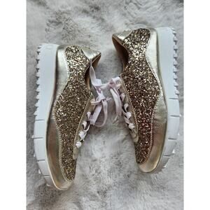 New with Defects JIMMY CHOO Monza Glittered Metallic Leather Sneakers Size EU 35 Gold, no original box, no dust bag