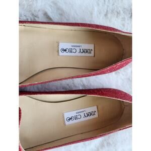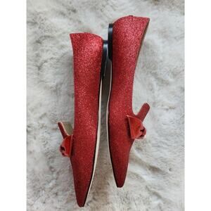NWD Jimmy Choo Red Glitter Flat Bow Size EU 38 Red