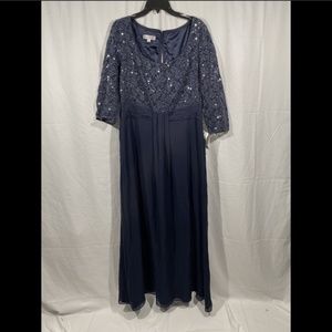 NWD Kay Unger Sequin Lace & Silk Chiffon Gown Navy