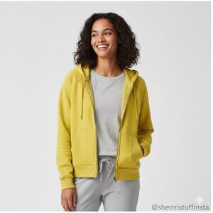 This Lululemon Scuba Hoodie in Utility Yellow combines style and comfort. The oversized fit provides ease of movement, while the full-zip design allows for versatile layering. Crafted from a breathable cotton terry blend, this hoodie is perfect for transitional weather.