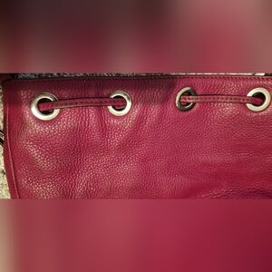 NWD Michael Kors Pebbled Leather Drawstring Shoulder Bag Fuscia Pink Chrome Logo