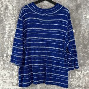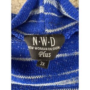 NWD New Woman Design Plus Size 3X Striped Mock Neck Sweater Blue 3/4 Sleeve