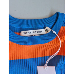 New with defects Tory Burch Sport Broad Stripe Tech Knit Dress Size XS Galleria Blue Stripe 2B413