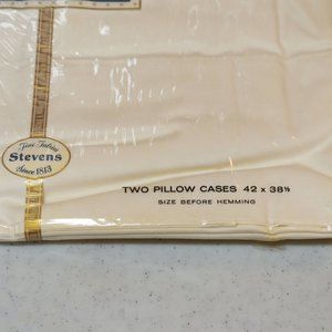 NWD Vtg Stevens Beauticale Cotton 200 Thread (2) Cream Pillow Cases 42 x 38.5