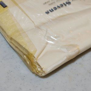 These pillow cases are still unopened. However, they have blemishes (new with defects - NWD) from yellowing. The pillow case material has yellowed in areas near the upper right corner, lower right corner and lower left corner where the packaging split (see photos #6-#10). Please closely review the photos for condition.