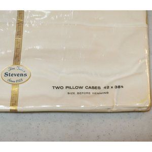 NWD Vtg Stevens Beauticale Cotton 200 Thread (2) Cream Pillow Cases 42 x 38.5
