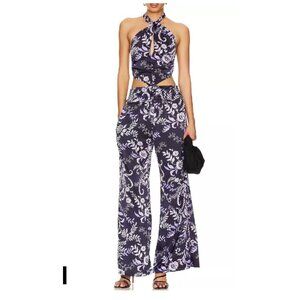 NWMisa LA Laya Indigo Vines Halter Wide Leg Cut Out Jumpsuit Purple Size S