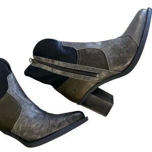 This is a pair of Casta metallic two-tone leather boots — handcrafted in Portugal from ultra-soft vegetable-tanned leather. Featuring a subtle western silhouette, artful texture play, and comfort-focused design, these boots combine authenticity, craftsmanship, and modern elegance.