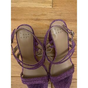 NWOB A New Day purple sparkle/glitter block, open toe, ankle strap pumps 6.5