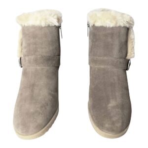 NWOB AQUATALIA Carlotta Faux-Fur Water-Resistance Suede Wedge Bootie Size 39 (US