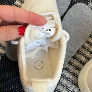 Comfy "Wool Runners" sneakers in off-white/cream color ("Natural White/Cream Sole"). With the "CK Create Your Own Karma" edition logo/mantra.
