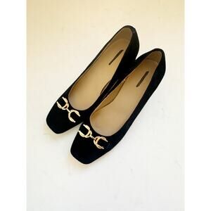 NWOB Ann Taylor Chain Suede Block Heel Black Gold 8