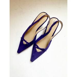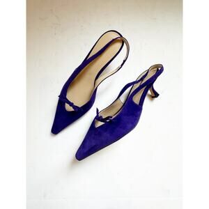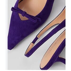 NWOB Ann Taylor Mini Bow Slingback Pointy Toe Purple Suede Kitten Heel Pumps 7.5