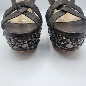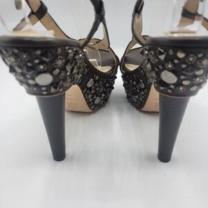 New without box BCBGMAXAZRIA studded heels leather upper size 38 see pics for verification of size has flaw on heel has scratch/chip on heel