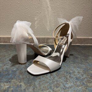 NWOB Badgley Mischka Satin Kim Mesh Bow Block Heel Sandals - 8