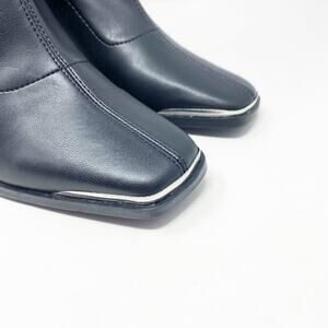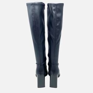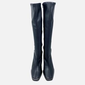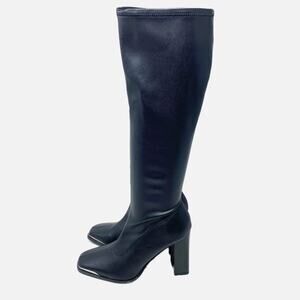 NWOB Bar III Black Faux Leather Square Toe Knee High Boots Women's Sz 7 Side Zip