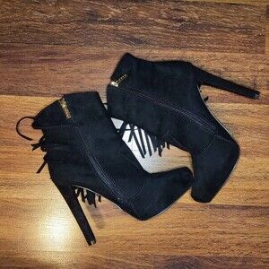 NWOB Bebe black Heeled Fringed booties boots Size 7