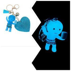 Featuring a sparkling rhinestone heart and cheeky little bedazzled Smiski with toilet paper, this keychain charm is perfect for adding a touch of joy to your day.