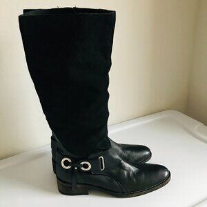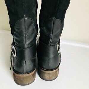 NWOB Bernardo B2 Suede Leather Buckle Knee Boots Size 10 EU 42 A quality made boot. Top is a soft black suede, bottom is full grain leather.