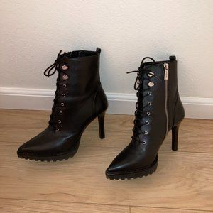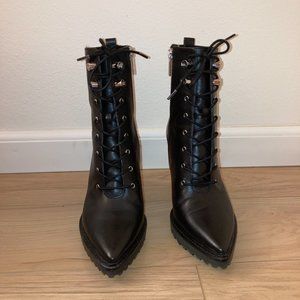 NWOB Black Michael Kors Kyle Leather Lace-Up Boot Size 7